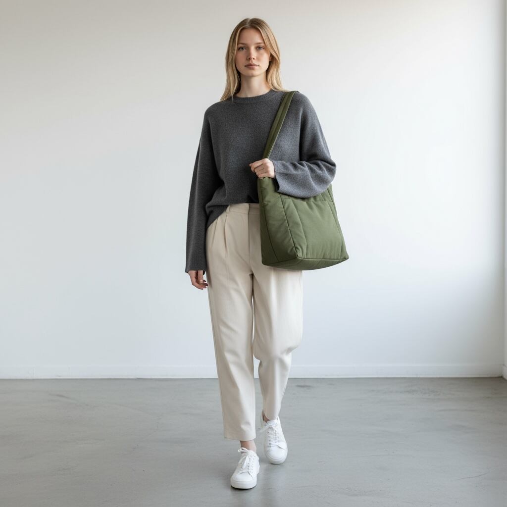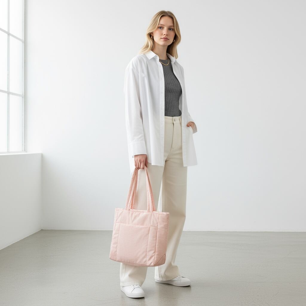 親しみやすいカジュアルなデザインが魅力のトートバッグ。W36×H29×D11cmの程よいサイズ感で、書類やノートPC、ランチボックスやペットボトルなど日常に必要なアイテムをしっかり収納できます。メイン荷室に加え、正面の小物ポケットでスマートフォンやパスケースをサッと取り出せる機能性も魅力。カジュアルな見た目ながら、オフィスカジュアルバッグとして肩の力を抜いた通勤スタイルにぴったりです。リラックスした雰囲気が、通勤バッグとして平日の朝を軽やかに演出し、週末のカフェ巡りやショッピングにも自然になじみます。使いやすいサイズ感と気取らないデザインが、毎日を快適にサポートする頼れるアイテムです。