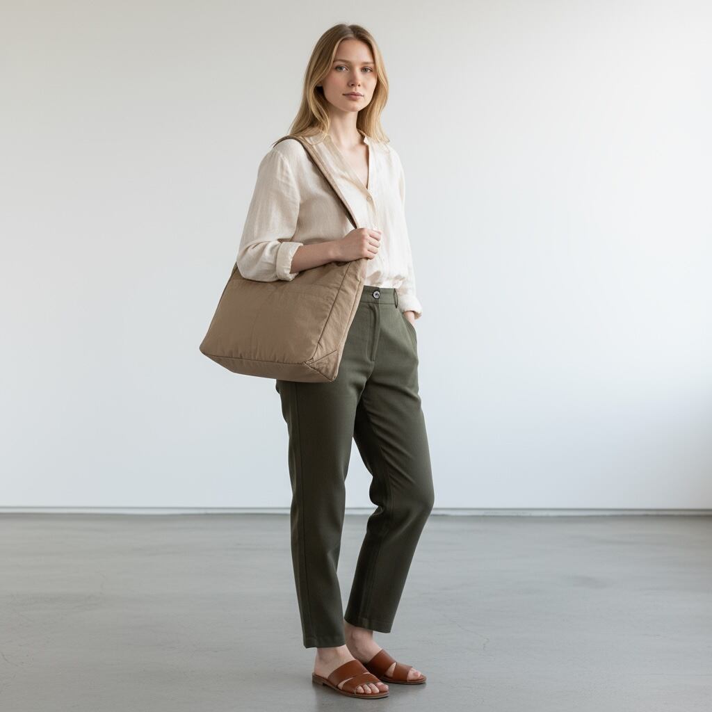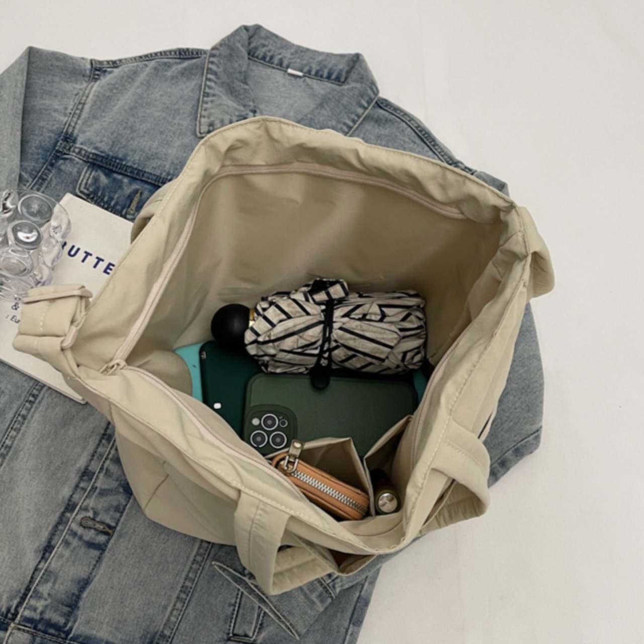 親しみやすいカジュアルなデザインが魅力のショルダーバッグ。W43×H31×D8cmの大きめサイズで、書類やノートPC、折り畳み傘やお弁当など通勤に必要なアイテムをたっぷり収納できます。メイン荷室に加え、正面には2つの小物ポケットを配置。スマートフォンやパスケース、リップなど、すぐに取り出したい小物の収納も充実しています。カジュアルな見た目ながら、オフィスカジュアルバッグとして肩の力を抜いた通勤スタイルでの使用にもおすすめ。両手が自由に使える斜めがけだから、通勤バッグとして平日の朝をスマートに演出し、週末のお出かけやショッピングにも活躍します。気取らないデザインと充実した収納力が、毎日を快適にサポートします。